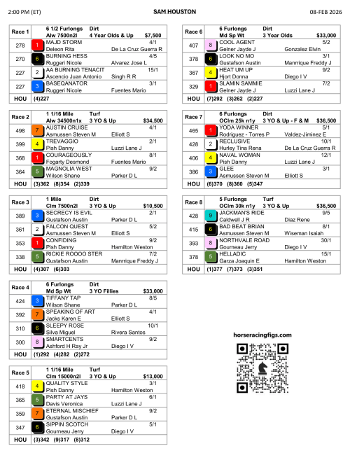 1ST RACE @ 2:00P ET